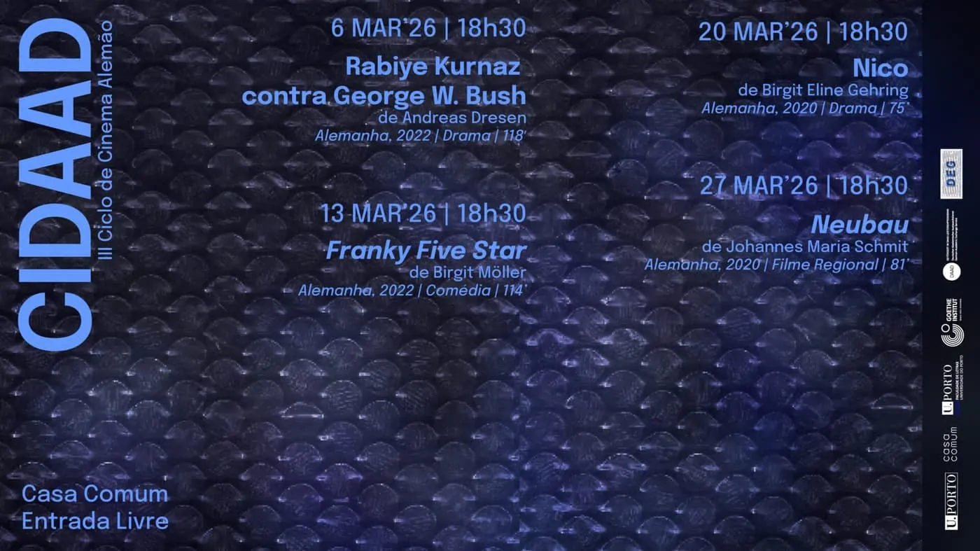 🎬 No dia 6 de março, o Porto recebe a exibição do filme Rabiye Kurnaz contra George W. Bush, realizado por Andreas Dresen, no âmbito do ciclo Corpos, Vozes e Lutas, integrado no CIDAAD — Ciclo de Cinema Alemão. A sessão decorre na Casa Comum, situada na Praça de Gomes Teixeira, com entrada gratuita.