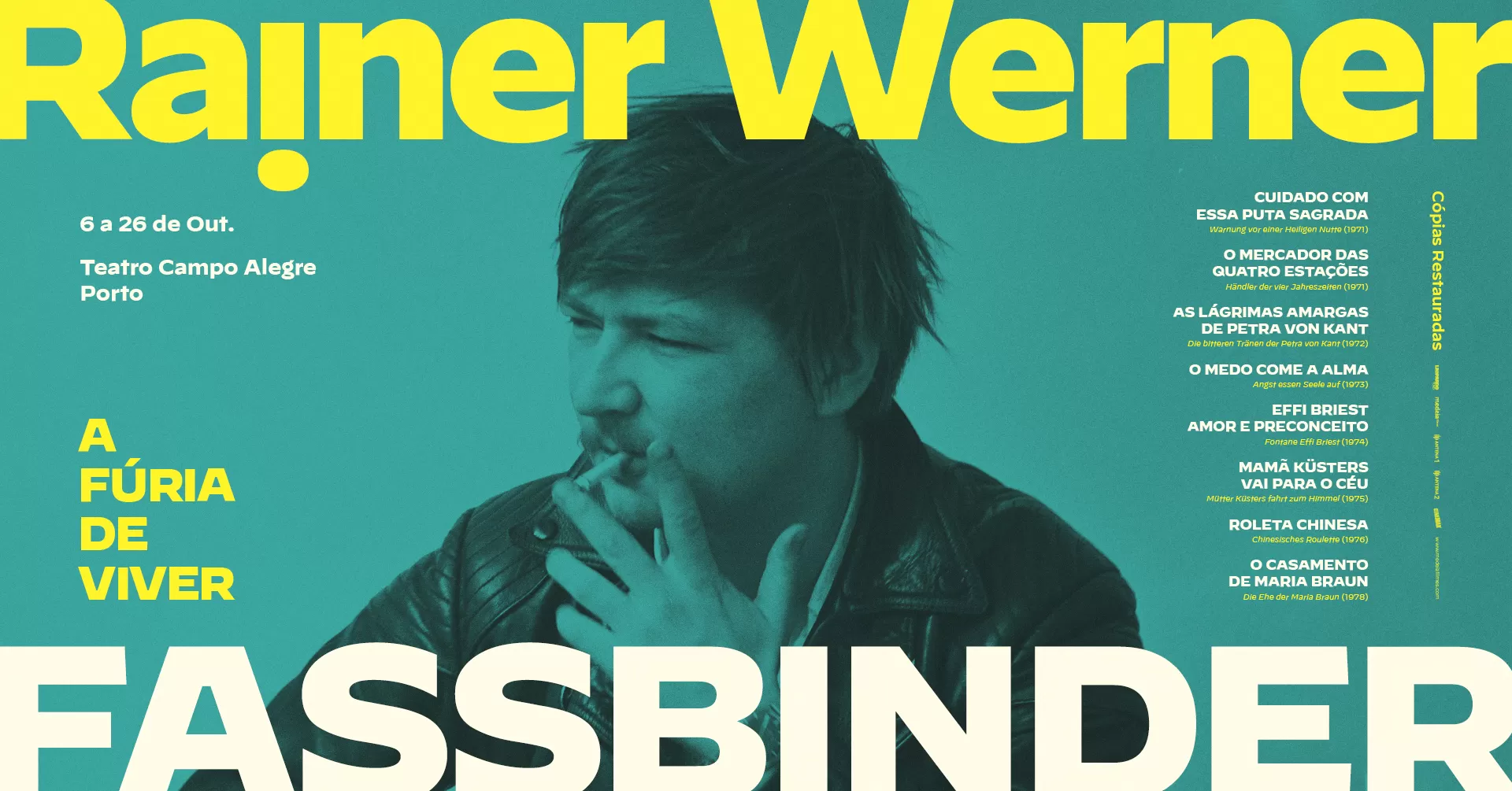 Este será o grande acontecimento cinéfilo da rentrée: um ciclo de filmes de um dos nomes maiores da história do cinema, Rainer Werner Fassbinder, cuja obra foi uma espécie de “abalo sísmico” cujos efeitos ainda hoje se fazem sentir. É por isso necessário voltarmos a ela, agora em novas cópias restauradas, que serão disponibilizadas ao público português, sobretudo às novas gerações de espectadores, que as usufruirão como uma extraordinária descoberta.