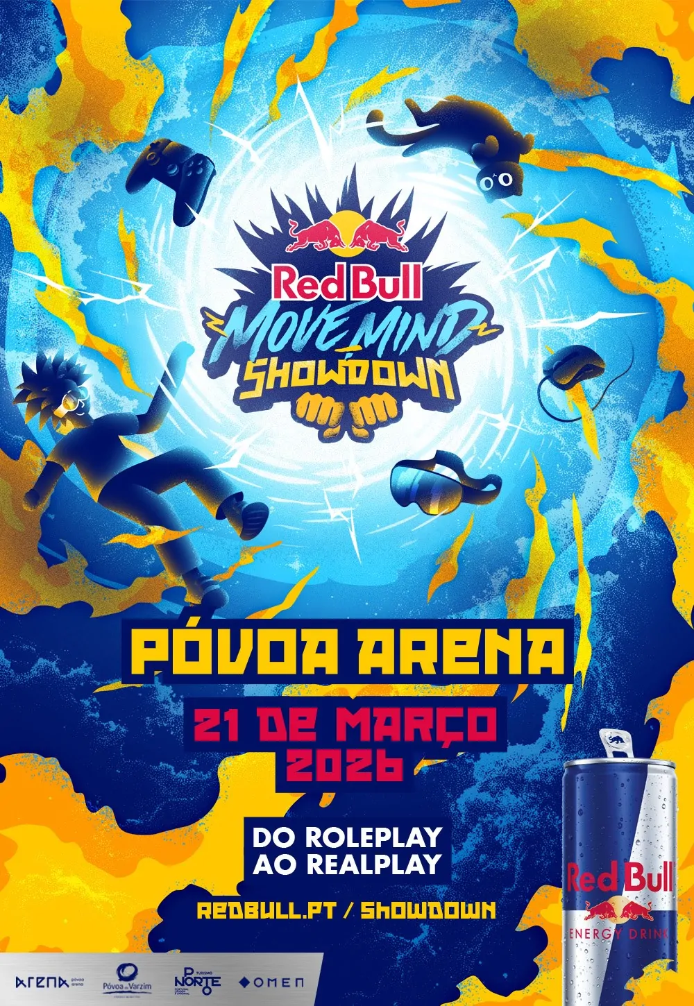 O Move_Mind Showdown transforma a Póvoa Arena num palco de criatividade, adrenalina e humor. Pela primeira vez, o universo do Move_Mind sai do ecrã para ganhar vida num espetáculo interativo que combina roleplay ao vivo, showmatch de CS2 com os melhores jogadores portugueses, performances musicais, aparições de atletas Red Bull e surpresas contínuas. Um evento pensado para unir comunidade, cultura gaming e entretenimento numa experiência única e épica.