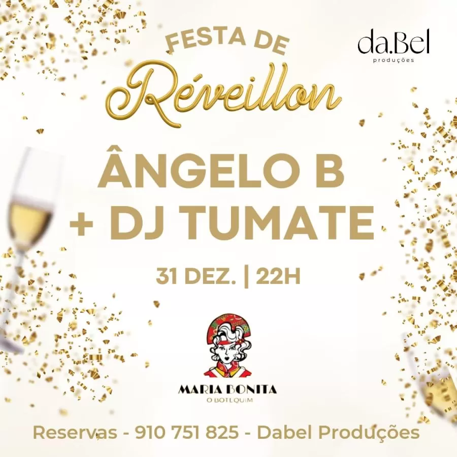 Dia 31 de dez venha passar o Réveillon no Maria Bonita com Dj tumate e MC Angelo B Valor 20€ com 10€ revertidos em variados menus ou bebidas Mesas reservadas ganham 1 espumante Venha curtir essa festa com a gente