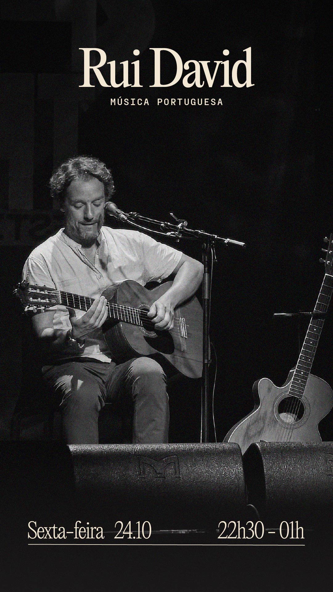 Rui David atua no Angel’s Share, bar de vinhos e cocktails do WOW. O artista é intérprete e compositor com uma profunda ligação à música portuguesa. Em 2018 participou no Festival da Canção com o tema “Contraluz” da autoria de Jorge Palma, logo a seguir lançou o single “Homem Novo”, com letra e música de Carlos Tê, e depois o tema “Sol da Primavera”, composto e interpretado em dueto por Manel Cruz. Mais recentemente lançou em videoclipe uma versão acústica do tema “Ateneu”, em dueto com Miguel Araújo. Um intérprete com muita estrada e digno representante do que melhor se faz no país.