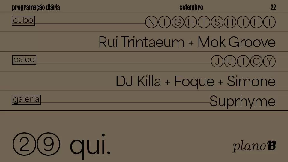 Rui Trintaeum, Mok Groove, DJ Killa, Simone, Foque, Suprhyme Rui Trintaeum, Mok Groove, DJ Killa, Simone, Foque, Suprhyme Data 29 Set 2022 Desde Hora 22:00 Localização Plano B Rua Cândido dos Reis nº30 4050-150 Porto Website https://agendaculturalporto.org/agenda-plano-b-porto/ Categorias Clubbing | NightlifeConcertos / Música Share this event Newsletter Receba comodamente no seu Email os eventos mais relevantes da cidade do Porto. Deixe este campo vazio se for humano:
