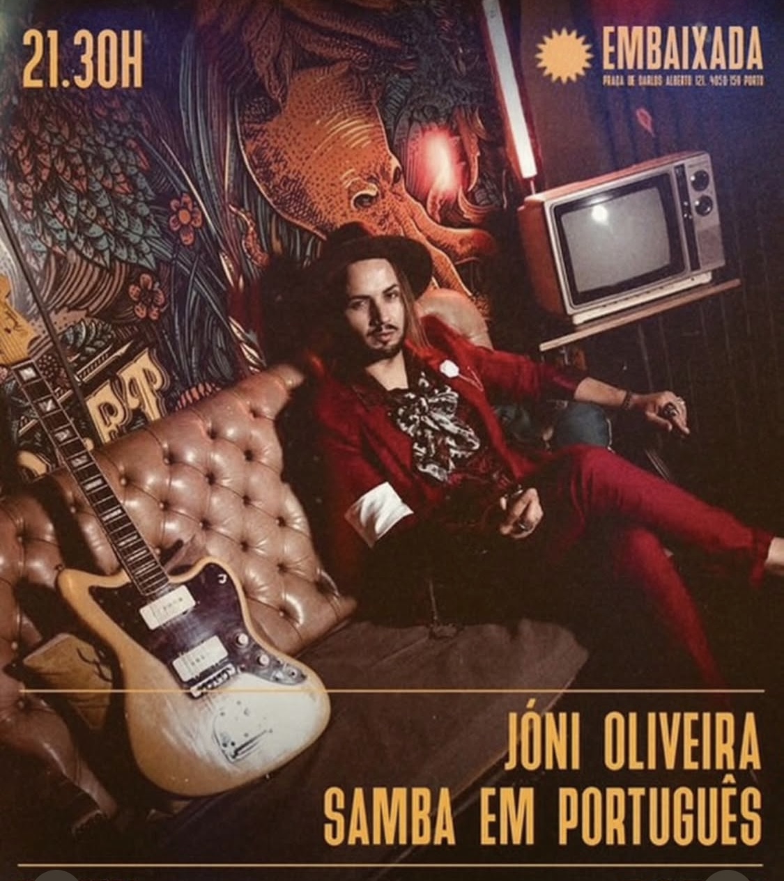SAMBA EM PORTUGUÊS – JÓNI OLIVEIRA SAMBA EM PORTUGUÊS – JÓNI OLIVEIRA + Adicionar ao Google Calendar Data 04 Fev 2026 Hora 21:30 - 23:55 Localização Embaixada do Porto Praça de Carlos Alberto 121, 4050-526 Porto Categorias Concertos / Música Share this event Newsletter Receba comodamente no seu Email os eventos mais relevantes da cidade do Porto. Deixe este campo vazio se for humano: