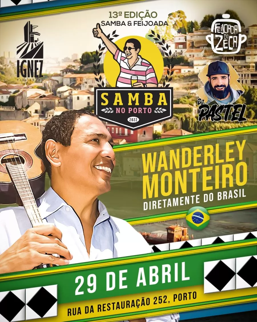 🥁 🎸 Nessa edição teremos o ilustre WANDERLEY MONTEIRO, diretamente do Brasil! O Compositor tem sambas enredos premiados na escola de samba Portela, entre outras obras renomadas na cena do samba, como Água de Chuva no Mar, interpretada por Beth Carvalho! Em sua trajetória, Wanderley gravou com diversos artistas como: Diogo Nogueira, Grupo fundo de quintal, Reinaldo, e outros. 🎧 DJ PASTEL e para acompanhar, a maravilhosa feijoada do Zé!