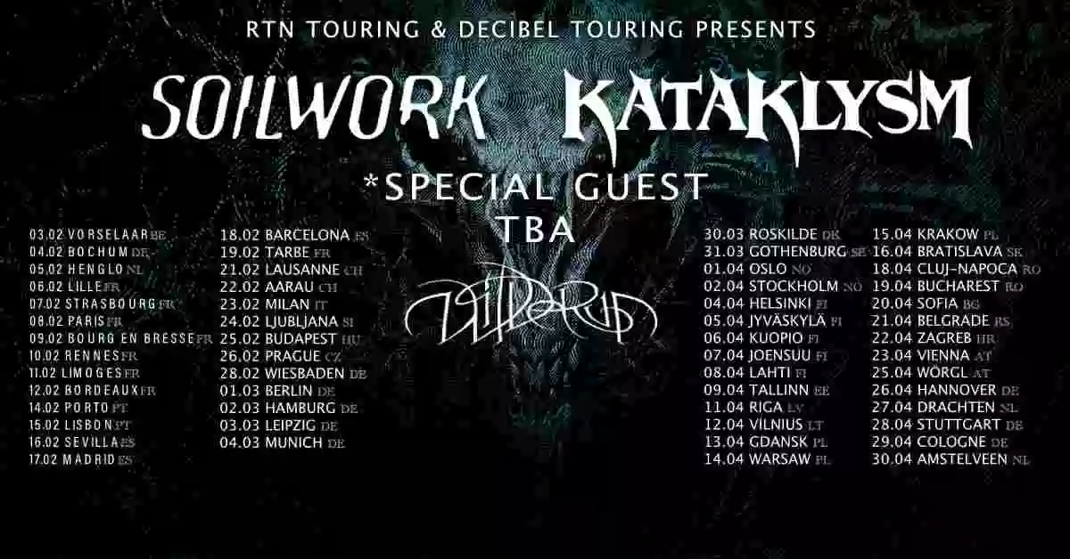 SOILWORK + KATAKLYSM Special Guest: Wilderun + t.b.a 14 Fevereiro | Hard Club – Porto Abertura: 18:00 – Inicio 19:00