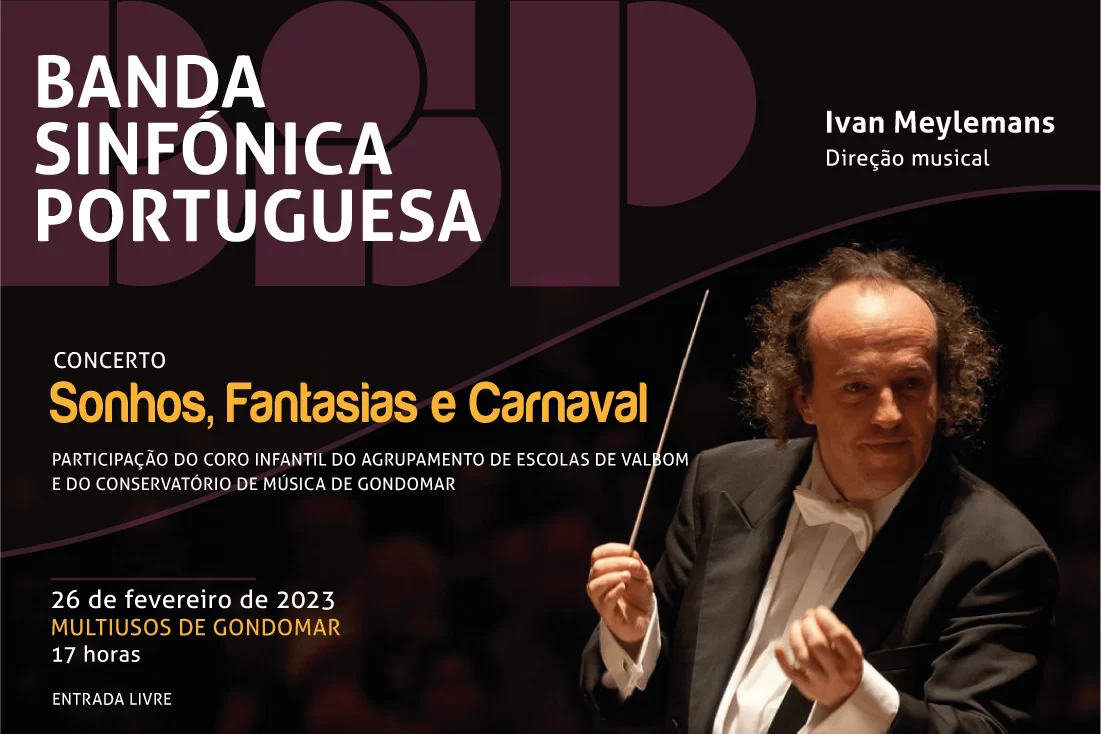 A Banda Sinfónica Portuguesa apresenta, na Sala D’Ouro do Multiusos de Gondomar, o concerto “Sonhos, Fantasias e Carnaval”, no qual interpretará temas de Søren Hyldgaard, Kevin Houben, Oscar Navarro, Philip Sparke, Willem van Merwijk e Pi Scheffer.