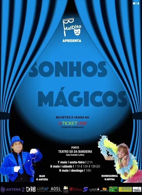 A Companhia de Teatro MalDito prepara-se para estrear a peça de teatro “SONHOS MÁGICOS” no próximo dia 7 de maio, na Sala Estúdio Latino do Teatro Sá da Bandeira, no Porto, onde continuará nos dias 8 e 9.