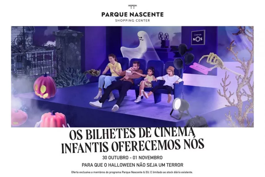 De 30 de outubro a 1 de novembro, o Parque Nascente vai oferecer 1.000 bilhetes de cinema infantis para as sessões que estão em exibição durante o fim de semana prolongado. A oferta é válida apenas para os membros da aplicação Parque Nascente & EU. “Ron dá Erro”, “Bigfoot” e a “Familia Adams 2” são alguns dos filmes disponíveis para os mais pequenos. “Venom – Tempo de Carnificina” e “Sombra” para os maiores. O fim-de-semana prolongado pede atividades divertidas com os miúdos e o Parque Nascente, juntamente com os Cinemas NOS, prepararam um Halloween cheio de magia e de surpresas, que não vai querer perder!