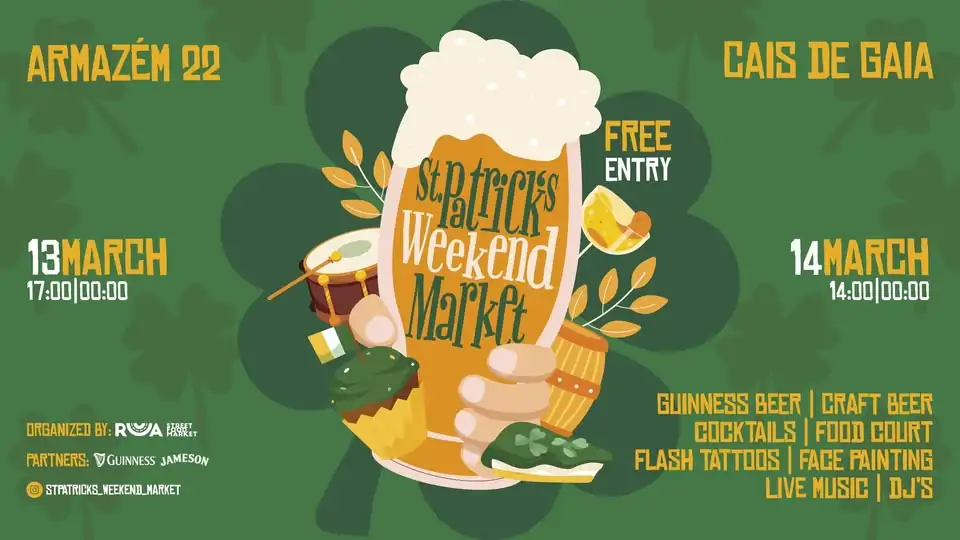 Vila Nova de Gaia prepara-se para receber a 1.ª edição do St. Patrick’s Weekend Market, um novo evento dedicado à celebração do imaginário e da energia associados ao Dia de São Patrício. A iniciativa acontece nos dias 13 e 14 de março, no Armazém22, localizado na Rua Guilherme Braga, e promete transformar o espaço num ponto de encontro para quem procura boa música, sabores variados e um ambiente festivo.
