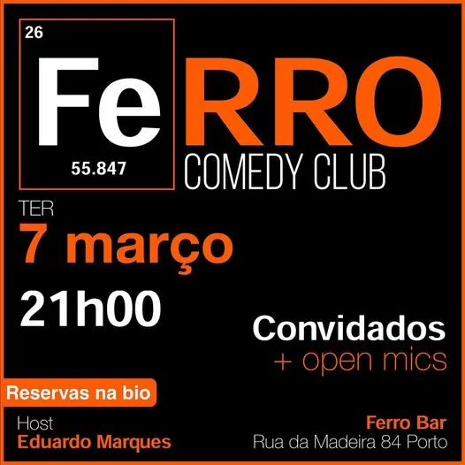 Bilhetes em: https://eventbuddy.pt/ferrocomedyclub