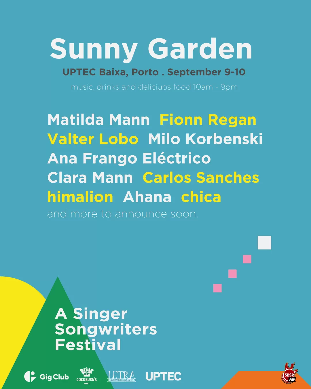 Sunny Garden Festival is a boutique singer-songwriters festival, for just 400 people in the beautiful garden of UPTEC Baixa (@uptec_porto). 12 brilliant composers playing striped down versions of their songs, just for you.