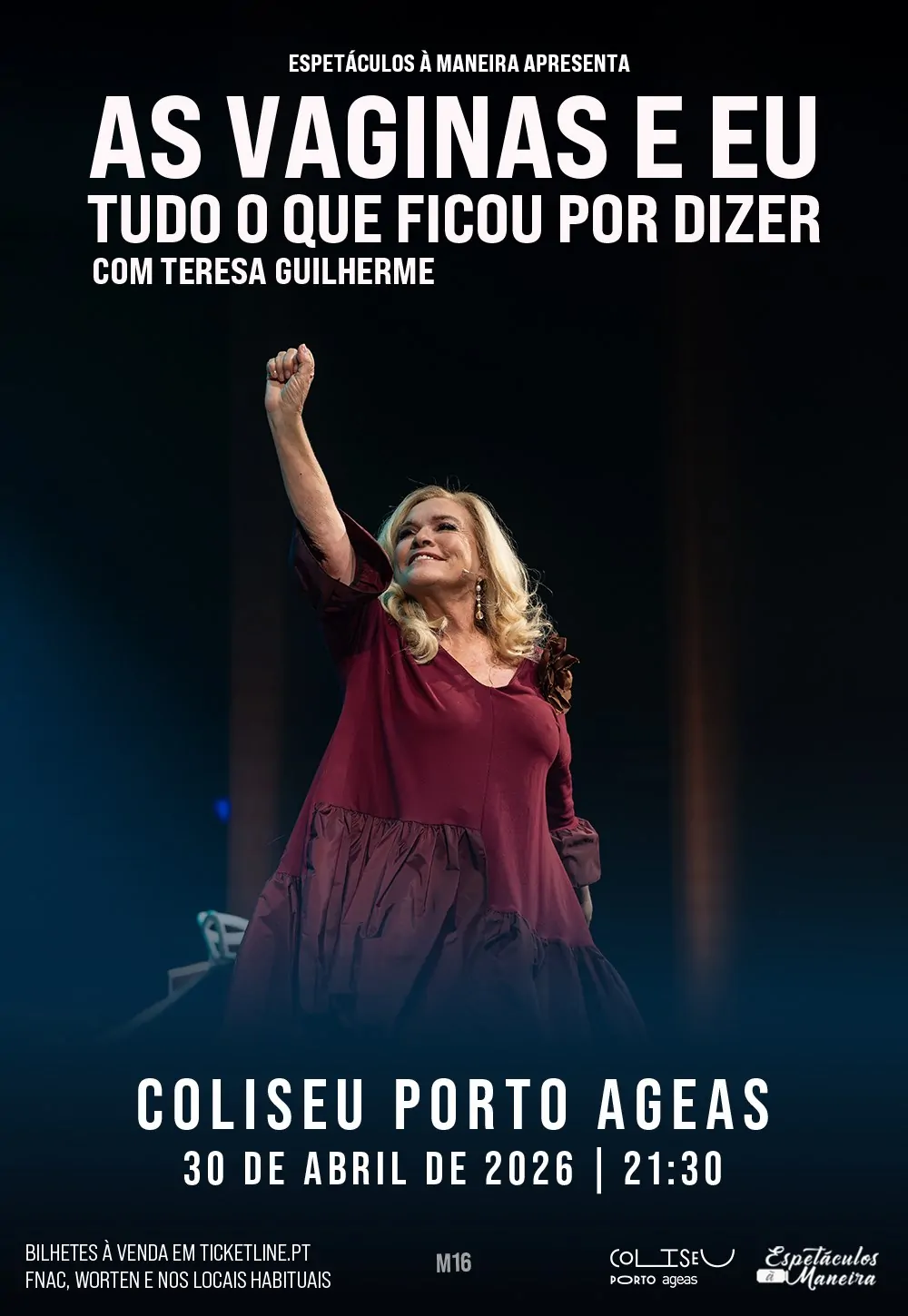 Teresa Guilherme, uma das maiores apresentadoras da televisão portuguesa, apresenta-se a solo com “As Vaginas e Eu – Tudo o que ficou por dizer”. Num espetáculo de humor de 70 minutos, aborda com irreverência as conversas secretas entre mulheres, os tabus e preconceitos ainda presentes na sociedade, sempre carregadas de gargalhadas e interatividade com o público.