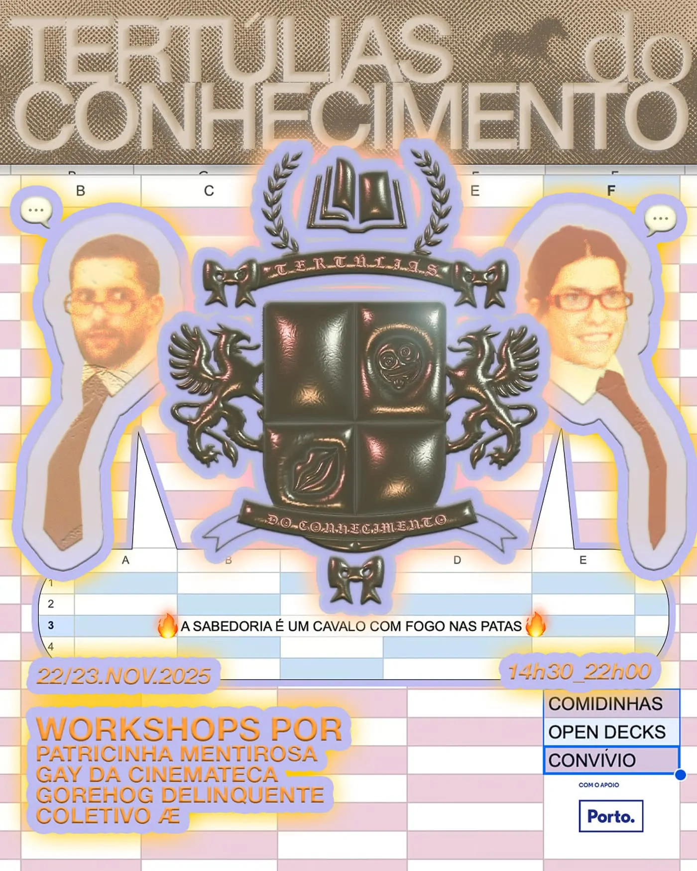 O primeiro capítulo das Tertúlias do Dragão celebra a partilha de saberes e experiências da comunidade. Durante os dias 22 e 23 de novembro, o estúdio A Leste abre as suas portas para um fim de semana repleto de aprendizagem, criatividade e convívio. O programa inclui: