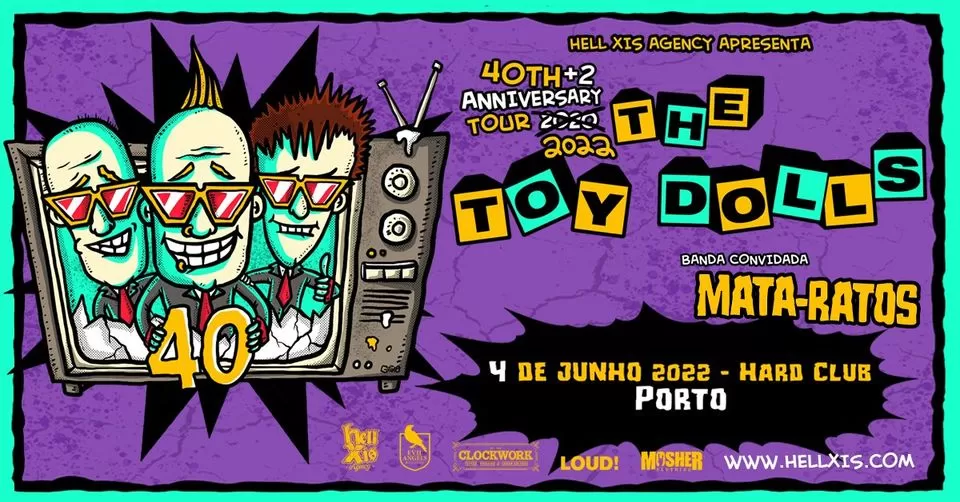 A tour que está a esgotar salas por toda a Europa chega a Portugal. The Toy Dolls em Lisboa e Porto, em Março na celebração dos 40 anos de carreira da banda, que a imprensa musical britânica apelidou de ‘one hit wonder’, passa por Portugal para duas datas.