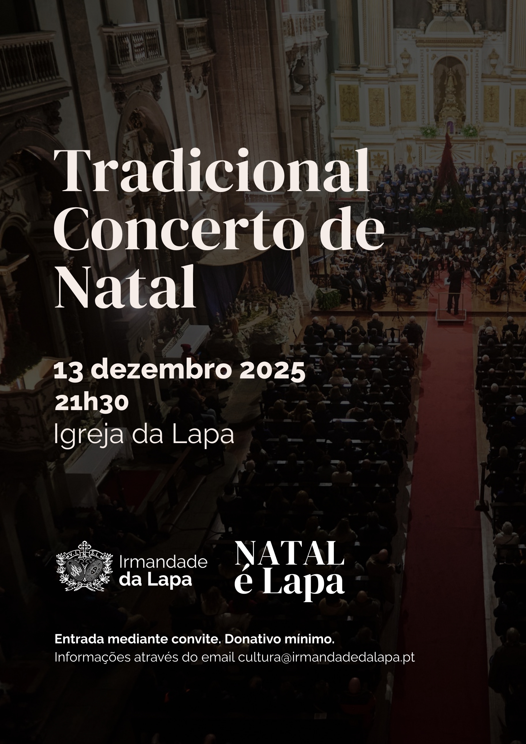 A Venerável Irmandade de Nossa Senhora da Lapa convida para o já Tradicional Concerto de Natal, que terá lugar no dia 13 de dezembro, às 21h30, na Igreja da Lapa.