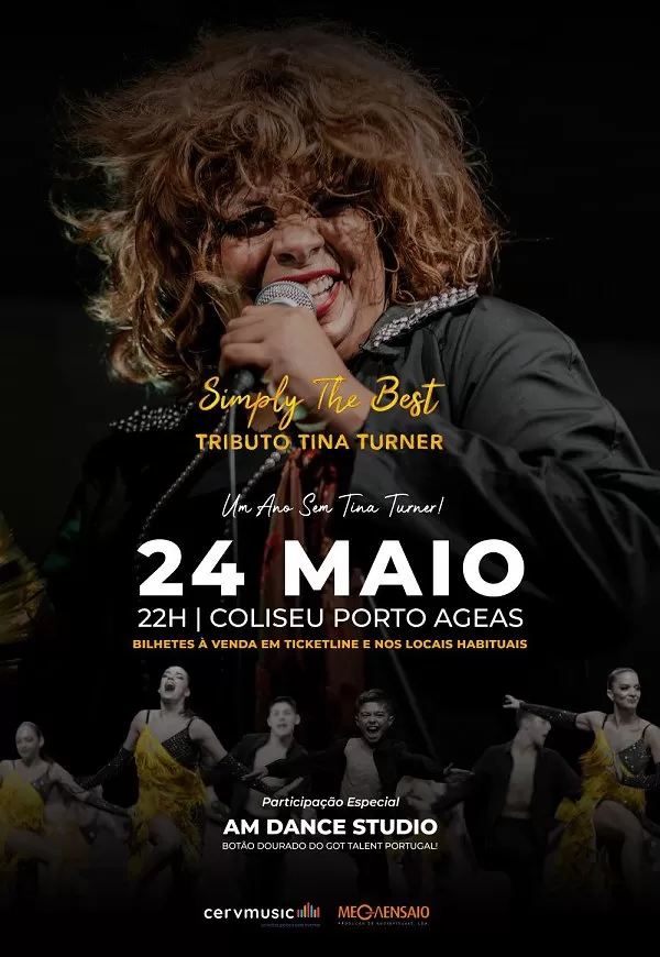 Simply The Best – Tributo a Tina Turner é considerado o maior tributo europeu a Tina Turner e estará ao vivo com um espetaculo memoravel na mitica sala do COLISEU PORTO AGEAS no proximo dia 24 de maio, data onde se comemora 1 ano da partida de Tina Turner. Contará com a presença especial da academia de dança profissional AM DANCE STUDIO, botão dourado no programa Got Talent 2024 e será um espetaculo unico de musica e dança, artes que Tina Turner desenvolveu durante toda a sua carreira. 1 ANO SEM TINA, será o maior espetaculo em portugal de trubuto a rainha do rock mundial.