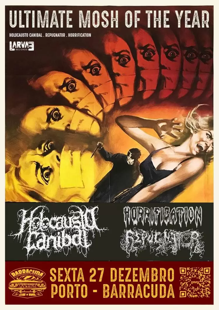 On December 27th, Barracuda – Clube de Roque in Porto will host the closing event of the year: Ultimate Mosh of the Year 2024! Get ready for a night of absolute chaos, with performances by Holocausto Canibal, Horrification, and Repugnator.