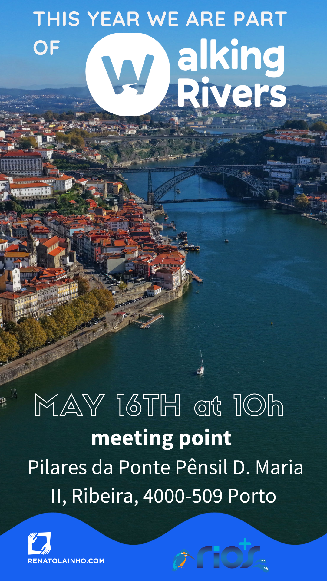 Movimento WALKING RIVERS 2026 – um evento internacional para aproximar as pessoas dos rios! Organizado por Renato Lainho (fotografo de Natureza) e RIOS+ este evento gratuito e sem necessidade de inscrição será uma caminhada da Ponte Dom Luís até a Foz do Rio Douro, seguindo sempre pela margem. O convívio será dedicado á interpretação dos sons do Rio (temática deste ano) assim como diversas pausas para observar a fauna/flora e conversar sobre tudo que surja relacionado com o fantástico DOURO!