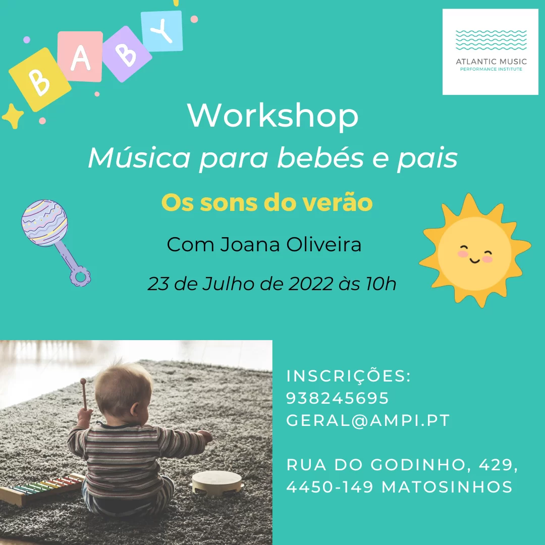 Joana Oliveira, professora de música para bebés, dinamizará no dia 23 de Julho às 10h, no AMPI, um workshop de música para bebés (entre os 3 e os 35 meses) e pais.