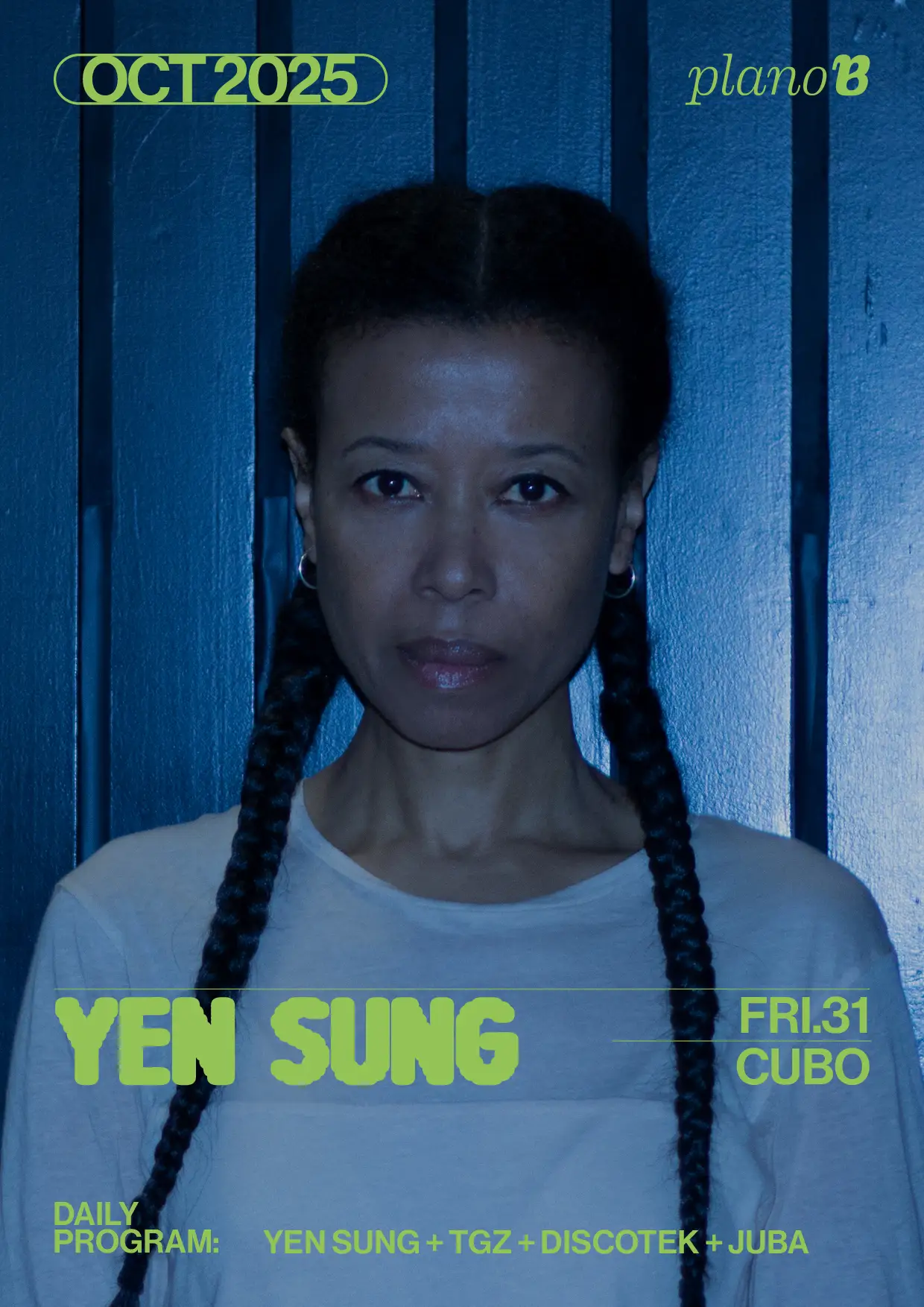 Na noite de sexta-feira, 31 de outubro de 2025, o Plano B, localizado na Rua Cândido dos Reis nº30, junto aos Clérigos, será palco de uma performance única da DJ e produtora Yen Sung. O evento decorrerá entre as 22:00 e as 06:00, prometendo uma imersão profunda nos géneros house e electro.