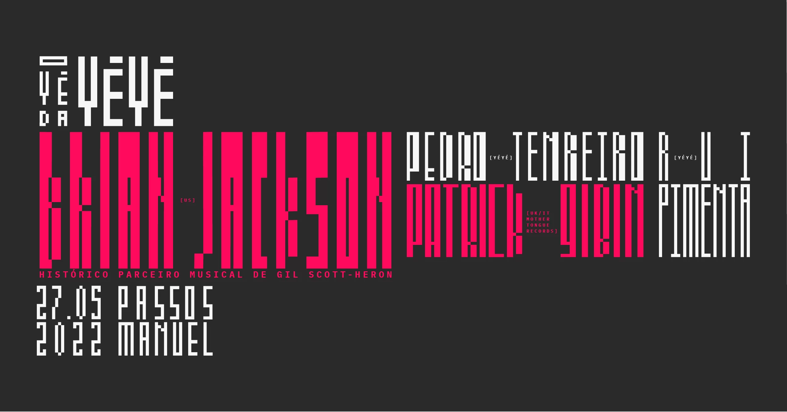 A noite de 27 de maio de 2022, no Passos Manuel, conta também Patrick Gibin, DJ e produtor inglês com base em Itália, fundador da Mother Tongue records e proprietário da Blend it! Records, completando-se com os sets de Pedro Tenreiro e Rui Pimenta.