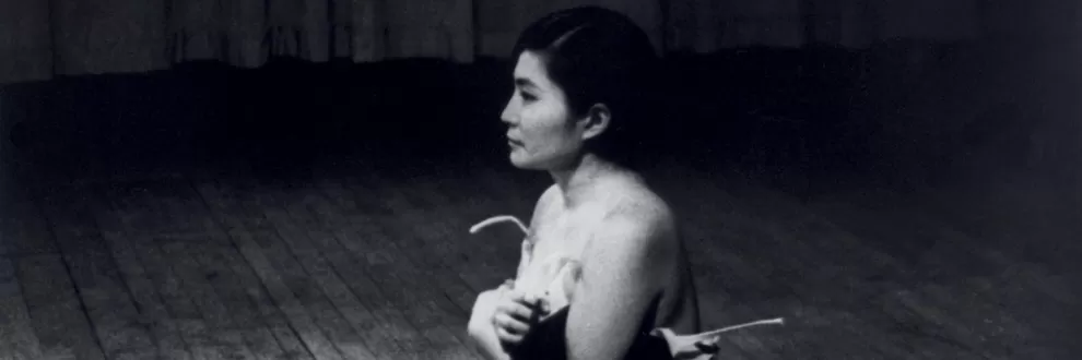 Entre o fim da década de 1950 e 1960, Yoko realiza obras de cunho conceitual que oscilam entre a introspecção poética e sátira provocadora. Entre elas destacam-se: Painting To See The Skies (“Pintando para ver os céus”), de 1961, uma folha que contém sucintas instruções em japonês de como transformar uma tela convencional em uma espécie de óculos para observação do céu; uma apresentação no Carnegie Recital Hall, onde utilizou microfones para registrar o ruído de descargas de autoclismos(PT) ou privadas(BR) (performance repudiada pelos críticos de arte de então); “Lightining Piece”, de 1955, performance na qual convida os espectadores a observarem a consumação de um palito de fósforo pelo fogo. Este último um esboço do interesse que mais tarde terá em produzir obras e performances que instiguem o observador a se relacionar esteticamente com fenômenos corriqueiros e banalizados pela rotina — uma rejeição do que a vanguarda Fluxus chamava de arte europeizada e ao mesmo tempo uma tentativa de integrar a arte à vida cotidiana, no entanto sem a conotação de artesanato/utilitaridade.